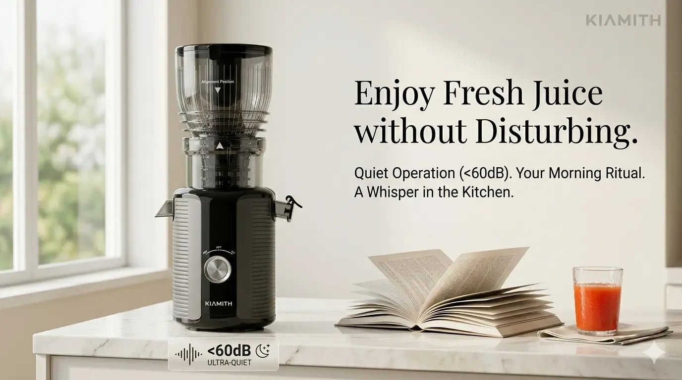 55 RPM Slow Cold-Press Technology for maximum enzyme retention. Professional extraction at a whisper-quiet <60dB.